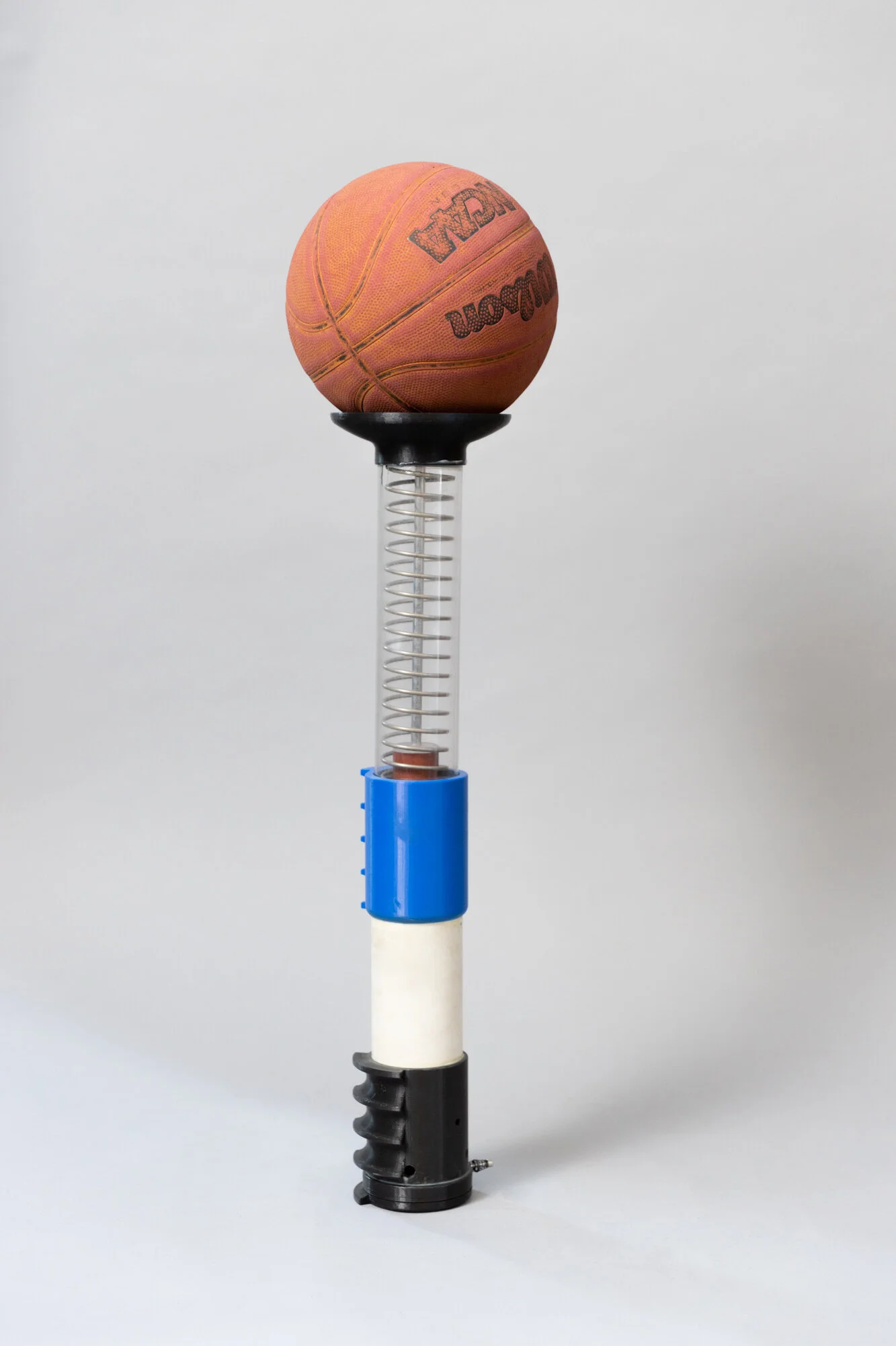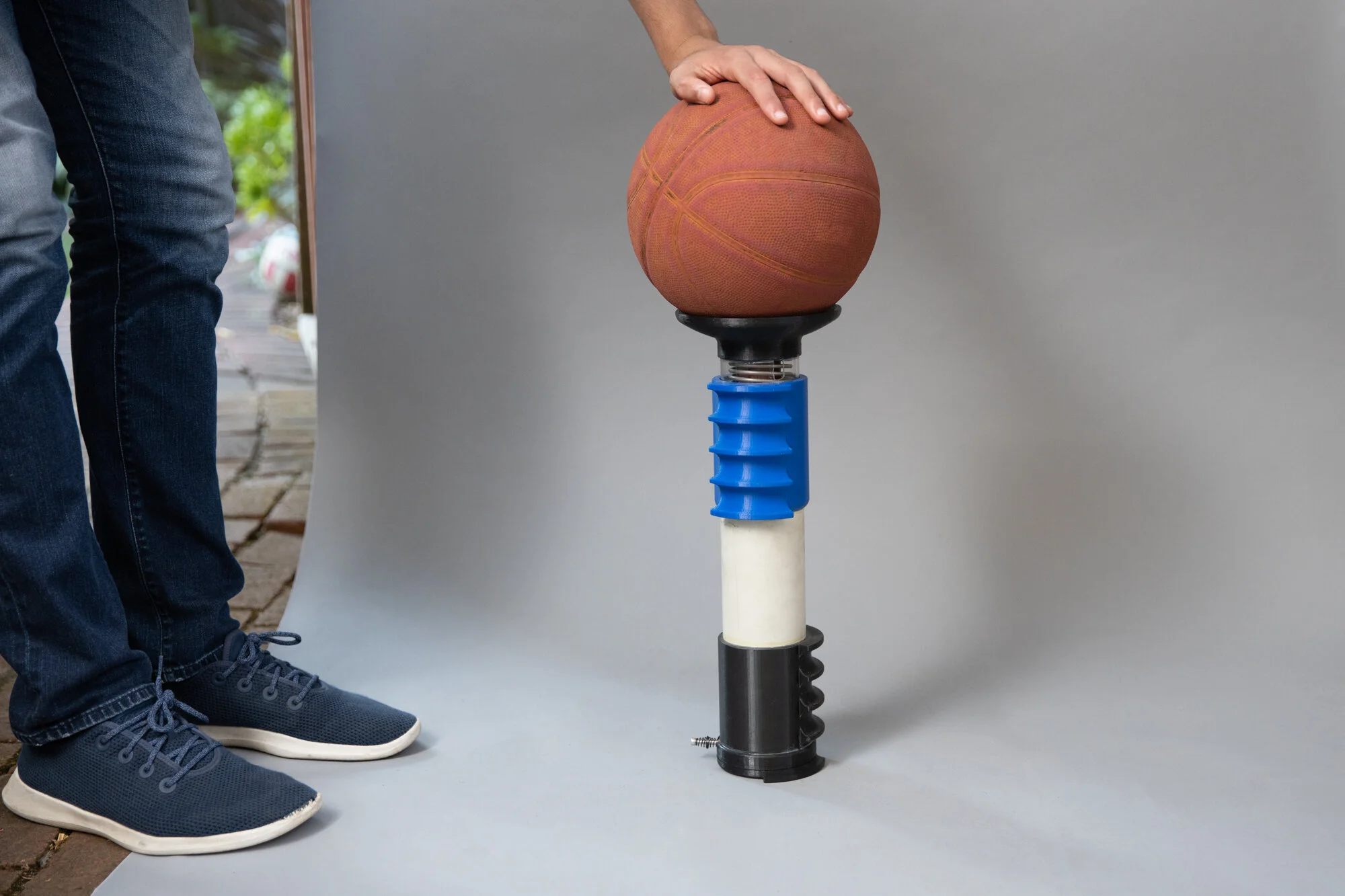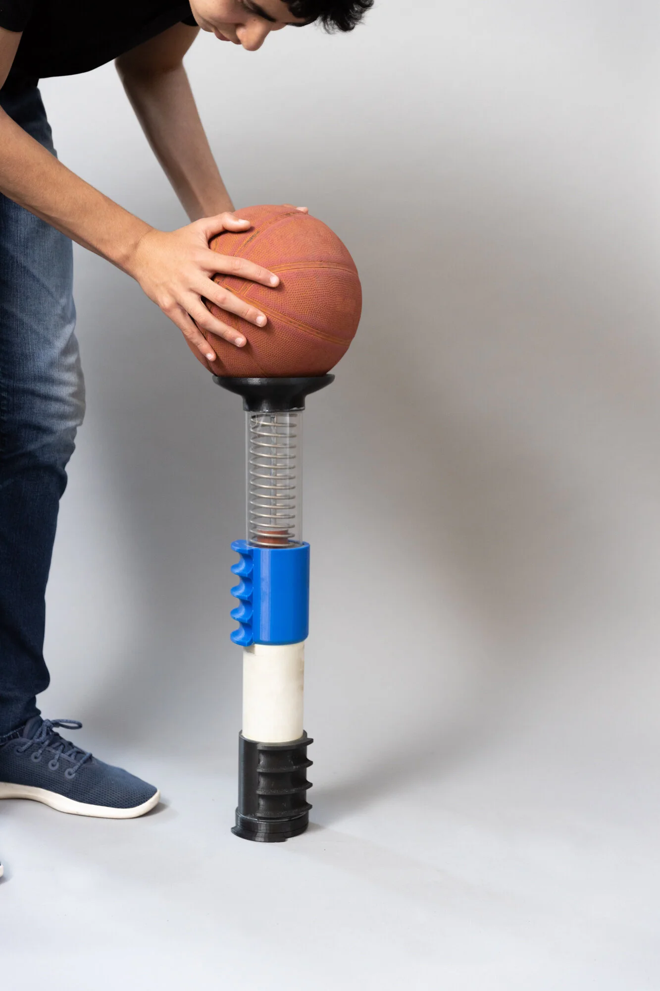 Just compress, hold, and then push the button to launch the basketball into the air!